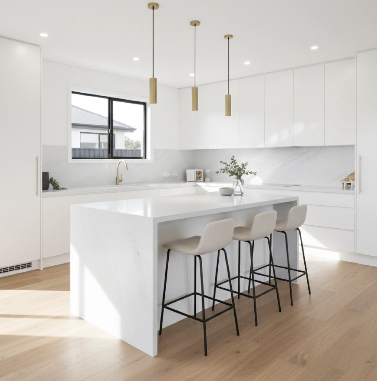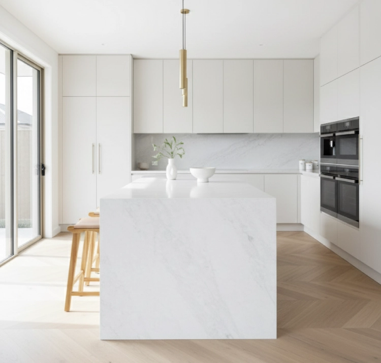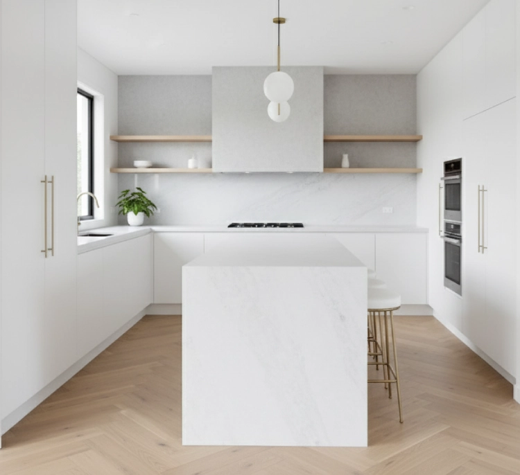 YDL Summer Breeze features delicate, warm grey veins that gracefully sweep across the entire slab, set against a refreshing palette of grey and white tones. This material is ideal for achieving a subtle marble appearance, offering versatility with its multi-tonal background.